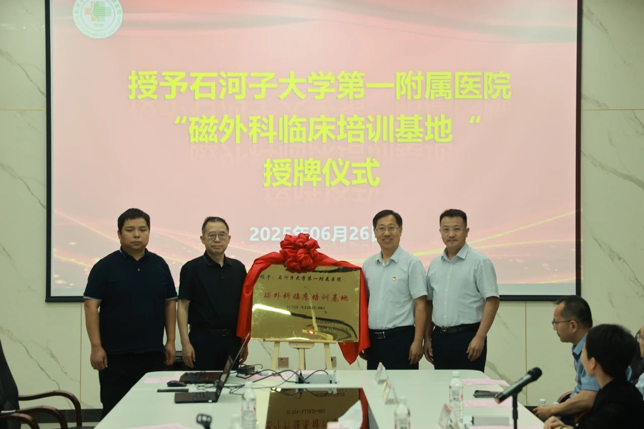 6月26日,由我院携手西安交通大学第一附属医院精准外科与再生医学国家地方联合工程研究中心主办的“磁外科学术交流会”在应急救援楼五楼会议室举行。会议期间,我院被授予该中心“磁外科临床培训基地”。西安交通大学副校长、西安交通大学第一附属医院院长吕毅,我院党委副书记、院长王维山,党委副书记于磊,副院长王丽,党委委员、兵团普外医院院长张宏伟出席会议。会议由王丽副院长主持。
